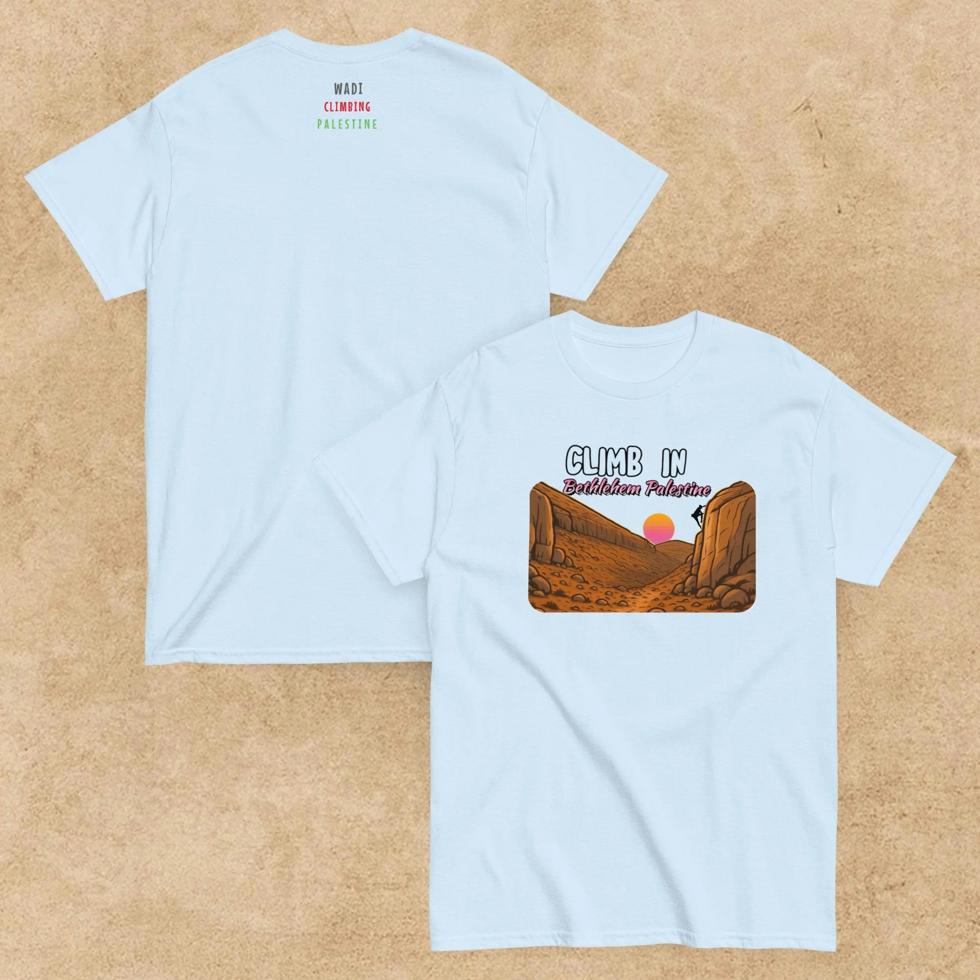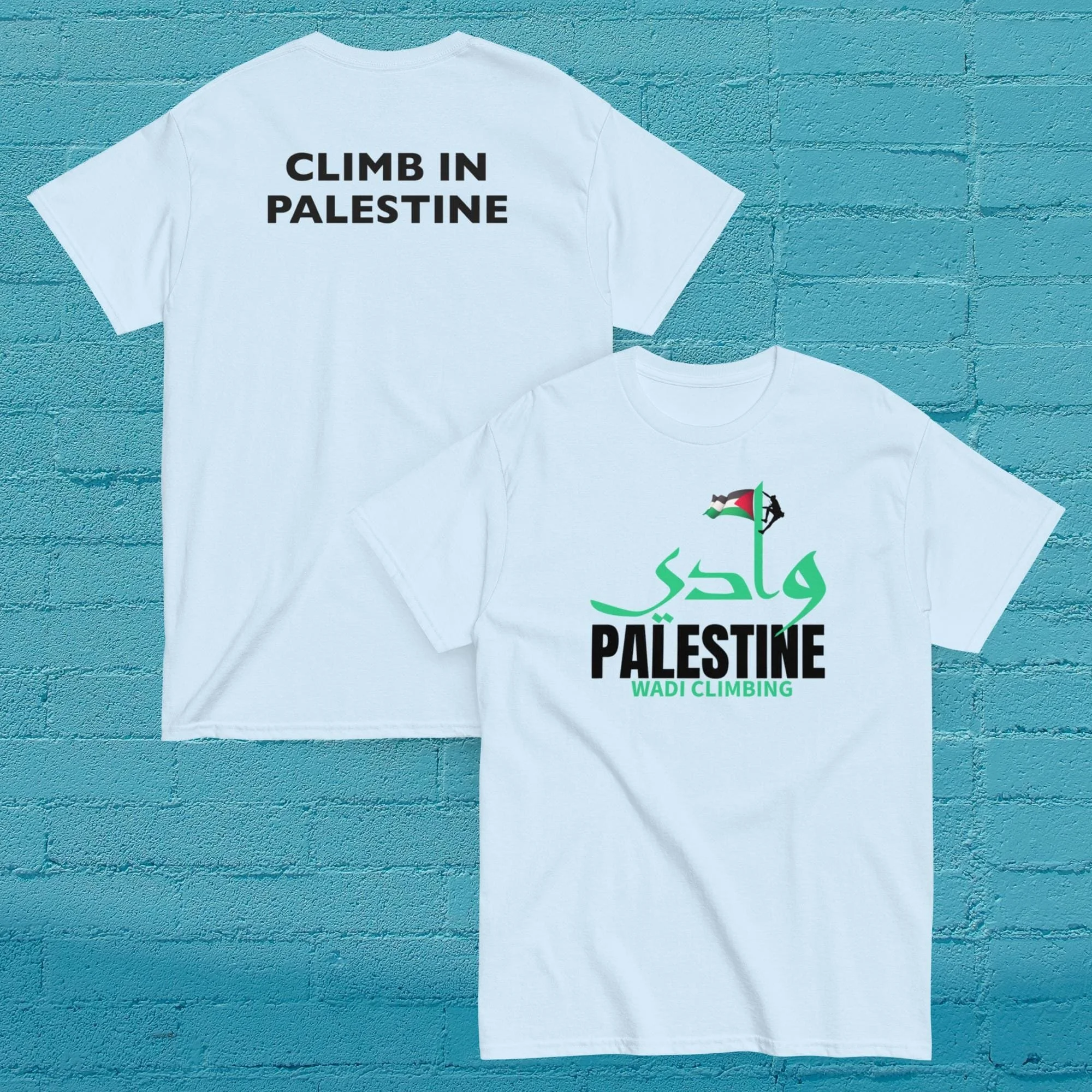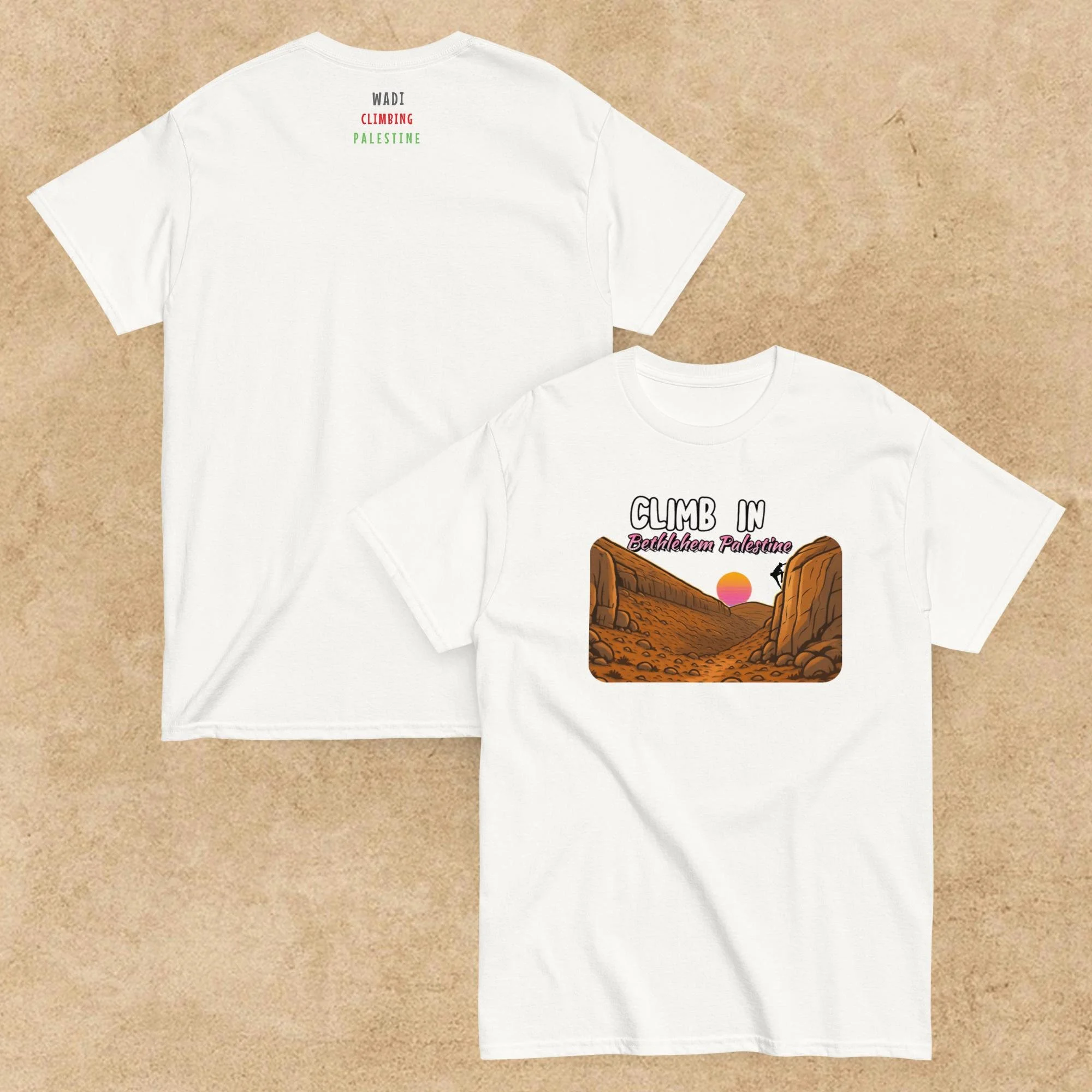 Your purchase support to raise awarenes If you have any notice or review please contact us on this Email Info@wadiclimbing.org All Climb in Palestine beanie €32.00 Wadi windbreaker Unisex (embroidery) €45.00 Climb in Palestine Sweatshirt Unisex from €50.00 Wadi Climbing Palestine Unisex Hoodie €50.00 Climb in Palestine tee €25.00 Climb in palestine Unisex tee €25.00 Climb in Bethlehem Unisex tee from €24.99 Wadi Climbing Palestine Unisex tee €32.00 Wadi Palestine Unisex tee €32.00 Wadi Palestine tee €32.00 Climb Palestine Hat (Embroidery) €35.00 Climb Palestine Dad hat (embroidery) €30.00 Wadi Climbing Palestine Tote Bag €27.99 Wadi Climbing Palestine Organic hat €34.99 Wadi Palestine Stainless steel bottle with a straw €27.00 Wadi Outdoor Mug €19.98