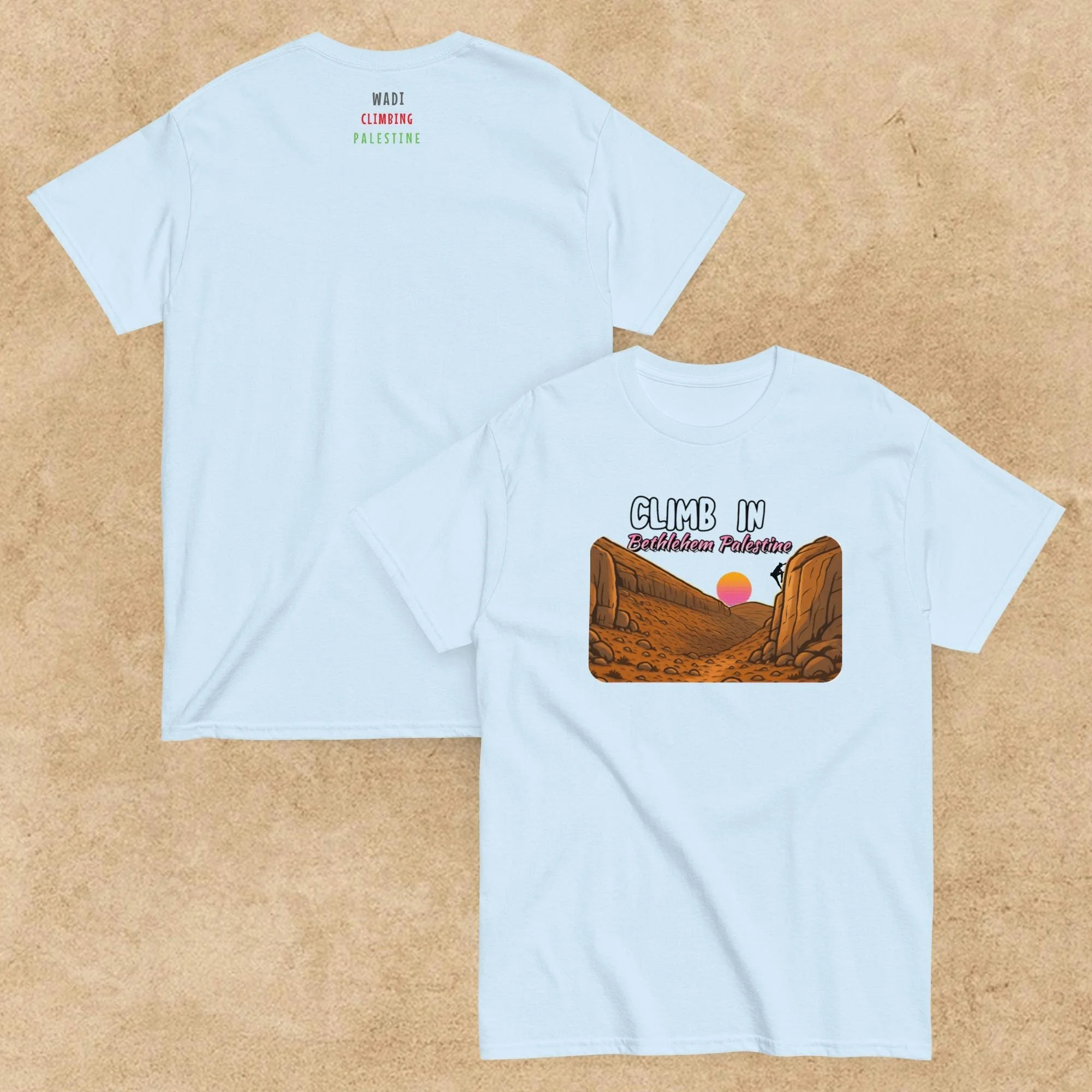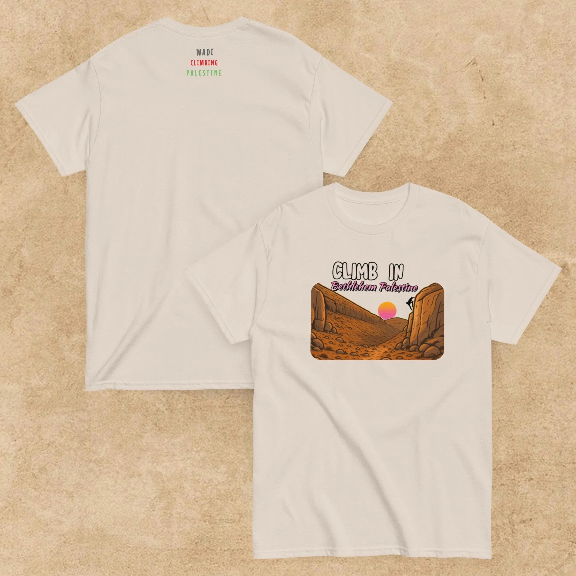 Your purchase support to raise awarenes If you have any notice or review please contact us on this Email Info@wadiclimbing.org Store All Wadi Climbing Palestine Unisex Hoodie €50.00 Climb in Palestine beanie ((embroidery) €32.00 Climb in Palestine Sweatshirt Unisex from €50.00 Wadi windbreaker Unisex (embroidery) €45.00 Climb in Palestine tee €28.00 Climb in palestine Unisex tee €28.00 Climb in Bethlehem Unisex tee from €24.99 Wadi Climbing Palestine Unisex tee €32.00 Wadi Palestine tee €32.00 Wadi Palestine Unisex tee €32.00 Wadi Climbing Palestine Organic hat €34.99 Climb Palestine Dad hat (embroidery) €30.00 Climb Palestine Hat (Embroidery) €35.00 Wadi Climbing Palestine Tote Bag €27.99 Wadi Palestine Stainless steel bottle with a straw €27.00 Wadi Outdoor Mug €19.98